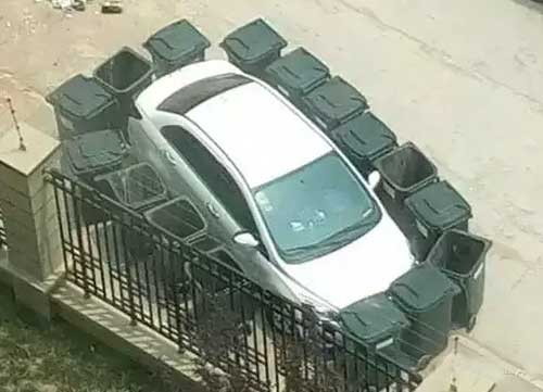 現在對于很多有車一族來說,是開車不難停車難,這停車可得選好了地方,這不最近在青島,一輛停在路邊的私家車被十幾個垃圾桶圍得“水泄不通”青島的杭州路上,一輛停在路邊的白色轎車,被16個黑色垃圾桶團團圍了起來,看上去既像是牢籠又像是保護,到底鬧哪樣?
