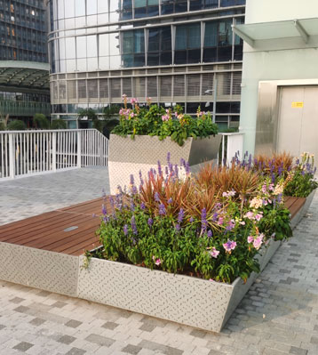 不銹鋼花池坐凳美化深圳前海跨街公園G9天橋...
