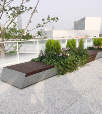 深圳濱海廊橋是“空中、地面、地下”三位一體城市連廊,定制的不銹鋼種植池座椅擺放于各景觀節點、特點區段、主題專區等公共空間景觀...